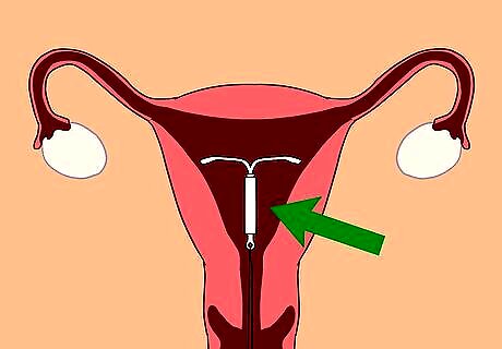 Get a progestin-releasing intrauterine device (IUD) for symptom relief. Though it won’t shrink your fibroids, a progestin-releasing IUD can reduce bleeding and relieve the other symptoms of your fibroids. However, it’s not a good option if you plan to become pregnant soon, as it prevents pregnancy. Talk to your doctor about all of your options. As with any medical device, progestin-releasing IUDs can cause side effects. You might experience cramping or a backache right after the IUD is inserted. For a few weeks, you may experience bleeding. Additionally, IUDs can increase your risk of pelvic inflammatory disease.