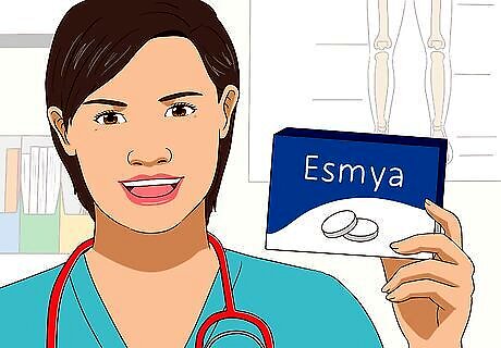 Ask about ulipristal acetate (Esmya) to help shrink your fibroid. This medication may reduce the size of your fibroid. Additionally, it can help relieve your heavy period, as well as cramping. Your doctor may prescribe it for you if you're at least 18-years-old and are experiencing moderate to severe pain because of your fibroid. Always follow your doctor's instructions for taking your medication. Rarely, ulipristal acetate can cause liver damage. Symptoms of liver damage include nausea, vomiting, fatigue, yellowing of your eyes or skin, itchy skin, dark urine, or pain on the right side of your torso. If you experience these symptoms, call your doctor and stop taking the medication.