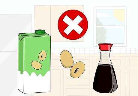 Avoid soy products, which contain estrogen. Estrogen can also fuel your fibroids, causing them to grow. Cut out soy dairy products, tofu, soy nuts, and items that list soy as an ingredient. Read food labels thoroughly, as soy is often an ingredient in packaged foods. The amount of estrogen in soy is very small, but it can affect you if you're sensitive to it.