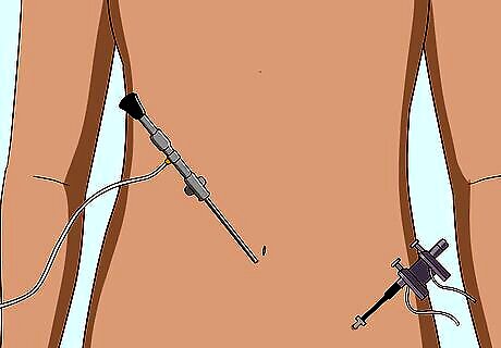 Use myolysis or cryomyolysis to destroy or freeze the fibroid. These laparoscopic procedures can eliminate your fibroids and reduce blood flow to them without surgery. During a myolysis treatment, your doctor will use an electric current or laser to target and destroy your fibroid using heat. Then, the doctor will use the electric current or laser to shrink the blood vessels that were feeding the fibroid. As an alternative to the heat treatment, your doctor can use cryomyolysis to freeze the fibroid and shrink the blood vessels leading to it. These procedures can cause discomfort, but they're minimally invasive. You might consider these treatments if you have painful fibroids that didn't respond to other treatment options, such as medication.
