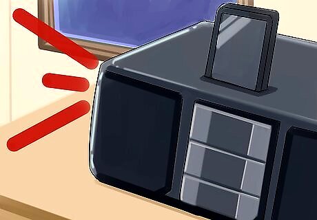 Set your phone or speakers right outside the shower. You can play the songs right off your phone or computer by setting it next to your shower, either on the ground or on a counter. Turn the volume up high enough so you can hear it over the water. You can also connect your phone or computer to a Bluetooth speaker in case you don’t want to put your phone or laptop near the shower. A Bluetooth speaker will also be able to play the music louder and with better quality. You can also use an Amazon Alexa or Google Home device. These have the advantage of voice activation, so you can skip or play a song without having to dry off your hands.