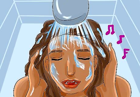 Sing from your diaphragm to feel and sound the best. When you’ve got the water warmed up, step in the stall and start singing! Try to draw your breath from almost below your waist to ease the strain on your vocal chords, especially if you don’t sing very often. This will help your diaphragm support your voice, which will both feel and sound better! One of the big benefits of singing is that it helps you to breathe more deeply, which can help you relax your mind and body as much as some forms of meditation.