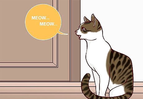 Pay attention to vocal meows to know when the cat needs something. If the cat meows loudly 1-2 times, assume that they want you to do something for them. Try giving them food, water, and attention. For an indoor-outdoor cat, open the door to let them go outside or come inside. If the cat continues to meow, inspect their body to make sure they aren’t injured or in pain. The louder the meow, the more urgency the cat is trying to communicate. If kittens are meowing with their mouth open very wide, they may be signaling that it’s time to feed or that they feel scared.Did you know? Cats often use meows to get their human to come to them. If your cat is meowing, try giving it some love and attention first!
