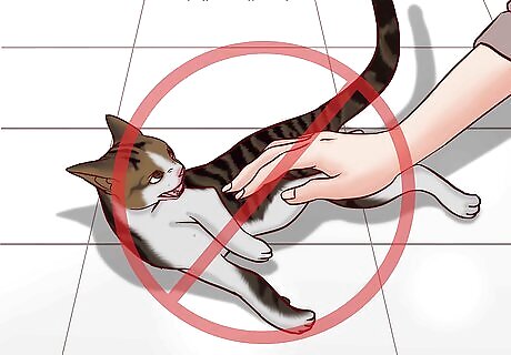 Avoid petting the cat’s stomach, even if they're lying on their back. If you come across a cat laying on their back with their belly and paws in the air, try scratching their head or sides. A cat shows their stomach as a sign of trust, and if you touch it, they might claw or bite you to signal that you broke their trust. Your cat may show you their stomach to say hello when you come home from work or to greet a new visitor.