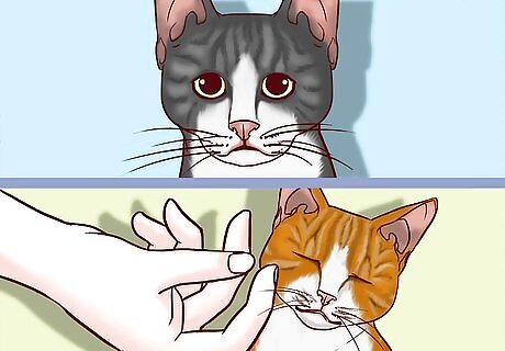Enjoy the cat’s purring, which signals friendliness and contentment. When you’re petting and playing with your cat, listen closely for a low, rumbling noise from their throat. Keep petting, playing, or feeding the cat in the same way, as this is a sign that they’re feeling happy and want it to continue. Once the purring subsides, it’s okay to remove your hand. Cats can easily become overstimulated, so be sure to pay attention to the noises and body language cues that they make.