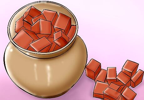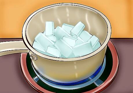 Pick a wax to work with. Waxes come in several main groups. Which group you choose is mostly based on preference. One group is paraffin, which is a by-product of petroleum. You can find it in a variety of melting points, depending on what type of candles you are making. For instance, you need a higher melting point for tapers than you do for container candles. Another type of wax is beeswax. Beeswax is a product that bees make, so it has a natural, light honey smell. Some people prefer this wax because it is all-natural, though others will mix beeswax with other waxes for their candles. A third category of waxes is vegetable waxes, where soy is probably the most popular. One benefit of soy wax is it is pure white, and it also doesn't shrink up when you pour it, which means you don't have to pour wax more than once. Bayberry wax is also in this category.