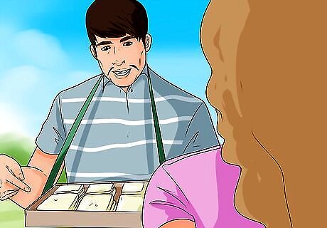 Sell in local stores. You have a couple of options when you offer crafts in local stores. Some stores will buy your product outright and resell it. Others will only take a commission when your product sells. A third option is buying booth space in a craft store that sells local crafts. The easiest stores to get into are ones that offer booth space, as you pay for the space. However, it's not always easy to make your booth space back. When approaching stores with your wares, have pictures with you, as well as samples. Be professional by being polite and dressing up. In addition, always call first to see when an appropriate time to come in would be. Some stores prefer that you provide photos online.