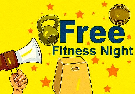 Put out a press release. Plan an opening event at your box, like a free fitness night. Contact local newspapers, TV and radio stations with some information about your event. Start by telling them pertinent information about your business in a sentence or two. Include information about your long-term goals and the quality of your trainers. Finish with a sentence about your grand opening events.