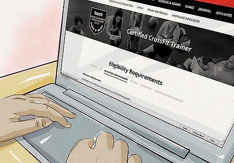 Get certified as a Level 1 trainer. To open a crossfit box, you need to be certified as a Level 1 trainer. Look at the CrossFit affiliate website (https://affiliate.crossfit.com/) to find training opportunities near you. Trainings are held several times a year. You can also meet this requirement with a CrossFit Level 3 Certificate. Plan to pay $1000 for the training.