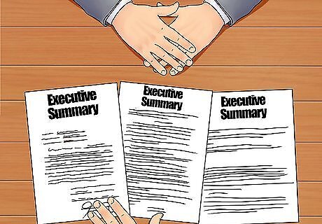 Create an executive summary for your business plan. Your executive summary describes the founding of your firm, where it's located, and the focus of its practice, as well as goals and objectives for the future. You also should include a mission statement explaining what your firm is all about and why you're doing what you're doing. For example, suppose you want to provide low-cost legal services to a struggling neighborhood. Your mission statement would include details about your commitment to the community and your desire to see its residents prosper.