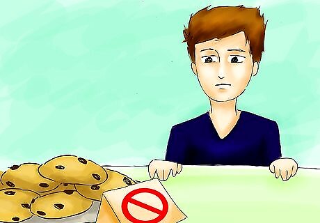 Find alternative ways to cope with emotions. When friends gather, be it in celebration, commiseration, or just to kill time, what do they do? They eat (or drink). When we're happy, we eat. When we're sad, we eat. When we have nothing better to do, we eat. Unfortunately, that's not good for anyone. Alternative methods of feeling must be had! Start thinking about when and why you eat, not just what. Maybe you always eat mindlessly when you're watching television, or maybe you go straight to the fridge when you're stressed. When you become aware of your patterns, it becomes easier to determine the cause. Start by keeping your hands busy—knitting, reading, or doing a word puzzle can keep you from grabbing the popcorn.