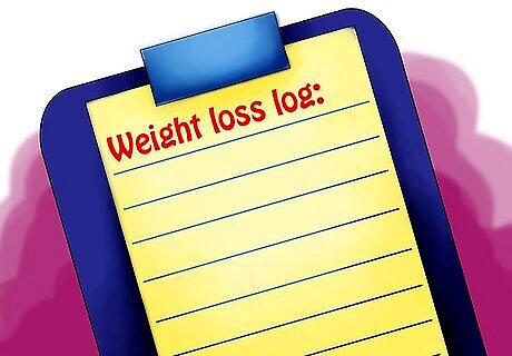 Log your progress so you can see how far you've come. If your weight loss is necessary for your health, it can be useful and motivating to compare your stats as you go along. Write down your diet and workout goals to come face to face with the hard work you've put forth. It'll feel really, really satisfying. Your daily weight can fluctuate due to water retention. Instead of basing your progress on daily weigh-ins, pick a set day and time each week to log your weight. Then, add the cumulative numbers of your weigh-ins and average them at the end of the month. This will offer you a more realistic showcase of your progress. Muscle weighs more than fat, so a scale may not always reflect the progress in your level of fitness. If you feel comfortable doing so, take photos of yourself on a monthly basis. Pictures can provide a great visual motivator as you consider your progress.