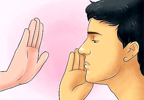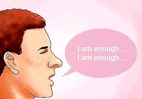 Use a mantra or phrase. Some people practice saying short mantras as a spiritual tool, while others find mantras remind them to calm down under stress. Repeating a mantra to yourself when in the presence of negative people can help you remain positive. The mantra that's meaningful to each person is highly individual. Some people chant words from sacred traditions, while others prefer simple words or phrases. An example of a mantra might be: “I am enough," or the Buddhist, "Om mani padme hum." Pairing mantra with your breath is a strong counterbalance to incoming negativity.
