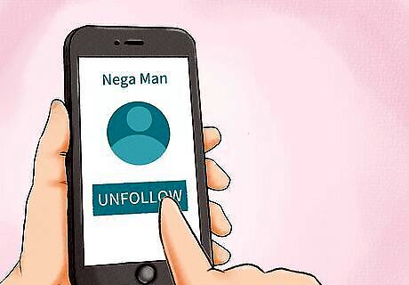 Avoid negative people when possible. Seek out positive people, and make sure to try to limit your time around negative people whenever you can. When you can't avoid spending time around negative people, try to make sure you're meeting in a group of people rather than just the two of you. If you're friends on social media, unfriending or unfollowing the posts of the negative person is one way to minimize your contact with the person. If there are events you have to attend with the negative person, go into them with as much positivity as you can. Take breaks as often as you need to.