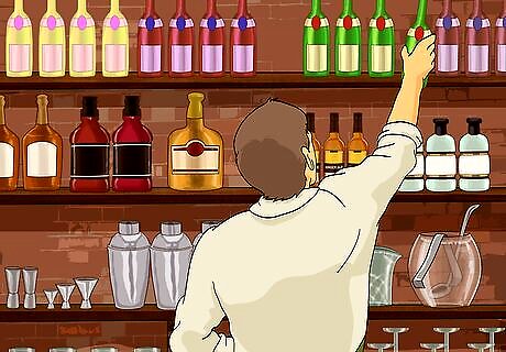 Include the most common liquors. Most cocktails can be made with one of the following base spirits: gin, white rum, vodka, bourbon, tequila, scotch, and brandy. One bottle of each should be the foundation of any well-stocked bar cart. It's not uncommon to include more than one bottle of each, especially if you already know which liquors you use the most frequently. You could expand the basics by including two bottles of each liquor – an average brand and a top-shelf brand. Differences between average and top shelf liquors include how thoroughly they may be distilled and the quality of ingredients. Top shelf liquors are more expensive than other brands. Flavored liquors are popular, but they aren't essential for a basic set up since their uses can be fairly limited.