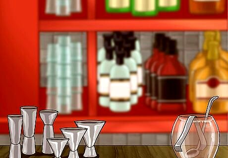 Keep multiple jiggers and bar spoons within easy reach. Jiggers are small glasses used to measure different amounts of liquor. Some people like to mix drinks by eyeballing the liquor as they pour, but this isn't recommended. Jiggers allow you to measure exactly. Bar spoons have thin handles that are long enough to reach the bottom of a shaker. You will use these constantly to stir, mix and layer cocktails. If you are a bartender for someone else, or if you're setting up someone else's bar cart, you definitely need to include several jiggers. Jiggers and bar spoons take up relatively little space, so try to keep at least 6 to 8 of each stocked in the cart.