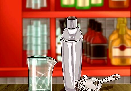 Stock at least one cocktail shaker, mixing glass and strainer at all times. One of each is the minimum requirement for a basic set up. If you're having a big party or plan to make lots of different kinds of cocktails, you should have 2 or 3 of each stocked on the cart. Many cocktail shakers come equipped with a strainer device on the top, but it's wise to have a separate strainer around.