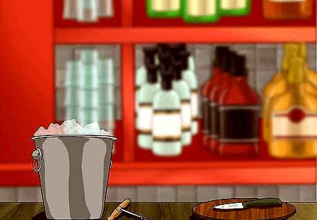 Include a corkscrew, paring knife, cutting board, ice bucket, and ice scoop. It's important to have these items on hand, although they tend to be the most easily forgotten ones! If you're serving wine, at least one quality corkscrew is absolutely necessary. The paring knife and cutting board are mostly for keeping up with garnishes, so at minimum have one of each. If you serve a lot of wine, spend a little extra money and invest in a good corkscrew that can pull corks quickly without breaking them.