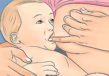 Break the latch with a hug. When removing your baby from your breast, hug them closer in towards your breast rather than pulling them off of you. The baby will briefly not be able to breathe with their face against the breast, forcing them to release your nipple without injury to either of you.