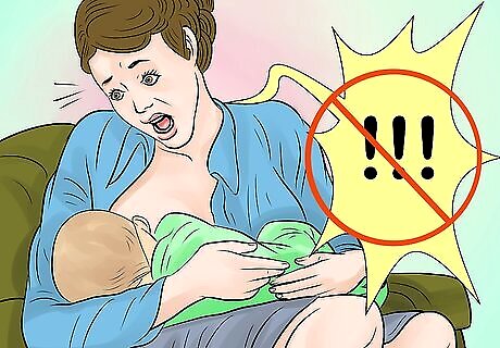 Avoid yelling at your baby when they bite. Do your best to remain calm, and not to cry out or yell at your baby when they bite you. This may scare them away from nursing for a while, or cause them to bite even more out of fear or anxiety. It’s also possible that your baby will enjoy your strong reaction, and it may drive them to bite again out of amusement.