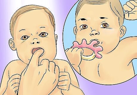 Deal with teething. Check your baby’s gums for teeth coming through, or watch for other signs of teething such as excessive drooling, swollen gums, and an upswing in fussiness. Deter your baby from biting due to teething by offering them a teething ring, a cold washcloth, or your finger to chew on right before and right after nursing. This will improve their teething pain while teaching them not to use you as a teething toy.