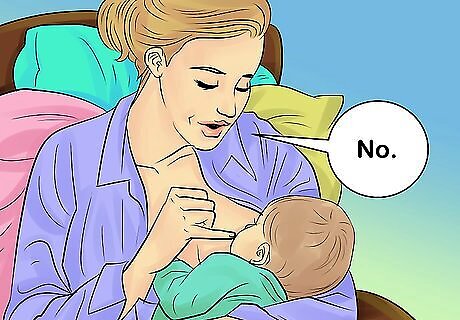 Sternly say "no" to your baby when they bite. While a younger baby might not catch on to this hint, they will eventually understand its meaning, especially if you stop nursing for a few minutes afterward. Consistently tell your baby “no” when they bite and do not let them nurse if they are biting, and eventually they will learn the command and will stop biting without you discontinuing the feeding.