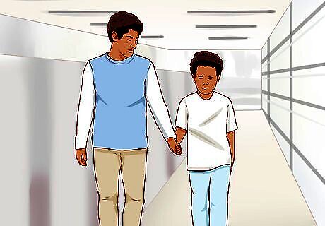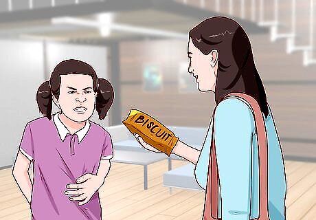 Remove your child from the situation. If your de-escalation attempts fail, your child may be overwhelmed. Take them away from the current environment (including the people around them) to let them reset. This can be done by moving into a hallway or even making a brief trip to the restroom. If you are unable to remove your child from the situation immediately (for example, during a funeral service), you can distract them from the situation with a toy or snack.