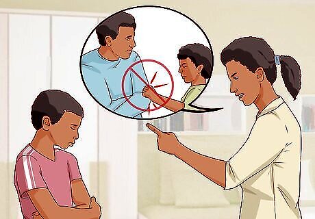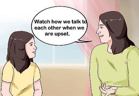 Show your child healthy interactions. As you minimize aggressive tendencies, you will have to show your child another option. By letting them see you interact with kindness and respect, you will set the expectation that they do the same. Make it a point to show them how you resolve conflicts without hitting. For example, you could say something to your child like, “Watch how we talk to each other when we are upset.”