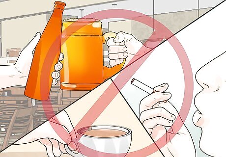 Stay away from drugs. Caffeine, alcohol, and tobacco can all cause eye twitching. Eliminate your intake of all of these until the twitching disappears. Some prescription drugs, like antidepressants and antihistamines, can cause a condition known as dry eyes, which can cause eye twitching.