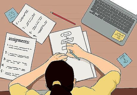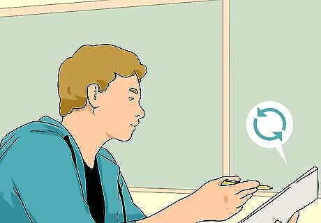 Complete all of your assignments to learn the material. Keeping up with your class assignments helps you learn the material more effectively. It also lets you avoid cramming for tests later on. Follow your syllabus and finish each assignment in by its due date to keep your grades up. If you have trouble with your assignments or get any questions wrong, make sure you speak with your teacher for clarification. That way, you’ll know the material in time for the test.