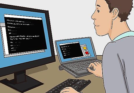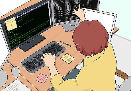 Study basic coding to design security programs. Cyber security specialists aren’t programmers, so you don’t have to know how to build complex programs. However, basic coding knowledge will help you on exams and on the job. Review the coding work you did in earlier classes, or do some online programs to bring yourself up to speed. If you’re studying cyber security in college, then you’ll probably have to take some intro computer science classes that teach coding. Use this material to help on your exams. If you didn’t learn coding in college, there are many books, programs, and videos online that can help you. Try checking out some of the programs that coding classes use and read them on your own.