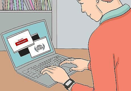 Look for certificate programs from CISCO or CompTIA. Both companies offer a range of certifications from beginner to advanced, and employers recognize their credentials. Find tests that measure beginner or intermediate skills to bolster your resume and earn more experience. For beginner or intermediate certifications, look for CompTIA’s Network+ or Security+ exam, or CISCO’s CCNA exam. These are all inexpensive and give you solid qualifications for cyber security jobs.