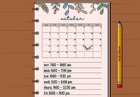 Make a study schedule to avoid cramming before the test. Studying at the last minute doesn’t work, especially for a field like computer security. You’ll have to build a knowledge base and know how to apply it in different situations. Start studying as soon as a test is scheduled so you don’t have to cram the night before. Your grades will benefit from getting a head start. The amount of time you’ll need to study depends. In general, spend 5-7 days before the test studying a little every night. This spreads the work out so you won’t get overwhelmed. If you’ve kept up with your class and homework, then you’ve done a lot of the work already. The knowledge base you’ve already built will help you avoid cramming. Some teachers announce all the tests at the start of the semester. In this case, you should definitely draw up a schedule to prepare for all of them ahead of time.