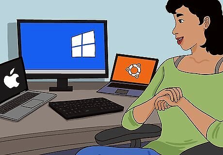 Learn the differences between typical operating systems. Security specialists need to understand the different operating systems a computer might use to protect them. Certification tests will probably ask you the differences between these systems. Different operating systems use different interfaces, firewalls, antivirus applications, and other security measures. Learn the security measures that the common operating systems use so you can maintain different computers. Basic pre-loaded operating systems are Windows, macOS, and Linux. Mobile devices use different operating systems as well. If you think that you may have to work with these devices at some point in your career, learn about these operating systems as well. If you want to get a good grasp of how operating system work, you can download them onto your computer and use them regularly. This may cost some money, but you’ll get very good at understanding the distinctions between operating systems.