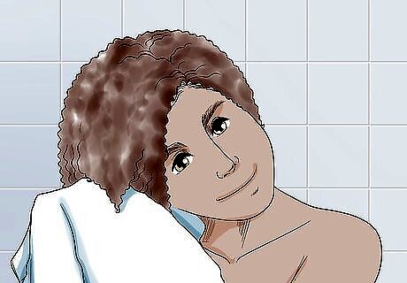 Pat your hair gently with a microfiber towel to remove excess water. Rubbing your wet hair with a regular towel can cause frizz, tangles, and breakage. Squeeze the excess water out with a microfiber towel or an old t-shirt to keep your strands smooth. Dab at your roots gently to soak up moisture.