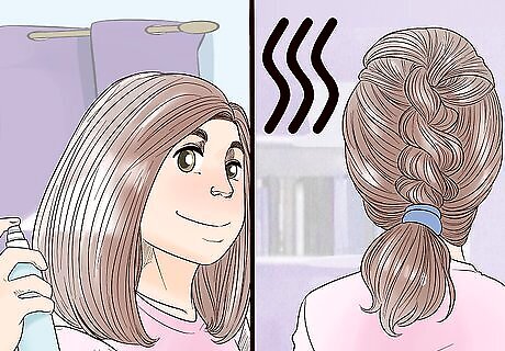 Let your hair hang loose to air-dry or braid it to create curls. If you want a soft, natural look, simply let your hair hang loose around your shoulders while you wait for it to dry. You can create waves and curls by braiding damp hair and letting it dry overnight. Wrap your damp hair into a loose bun and let it dry if you want tousled, beachy waves. If you're sleeping on wet braids overnight, consider putting a shower cap over your head to protect the style during the night.