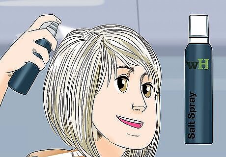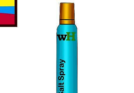 Apply a salt spray to damp hair to achieve beachy waves. Spray the product evenly on your hair, scrunch your hair a few times with your hands, and twist it in a few places if you want more defined waves. Let it air-dry, then use a little more salt spray before you head out the door for hold and to amp up the style. Spray a light-hold hairspray all over if you want more hold. Salt spray can be drying, so it’s best to use it in conjunction with some kind of hydrating product. Leave-in conditioners work great for this. Use your fingertips to massage your scalp once your hair is dry to add height and volume.