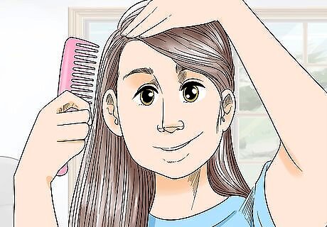 Avoid touching your hair while it dries. After applying your styling product, try to keep your hands off your hair. Twirling, scrunching, and combing through it with your fingers will leave a greasy residue behind that can weigh down your locks. Touching your hair repeatedly can also cause frizz when you’re air-drying. If you're leaving your hair loose to dry, don't go to sleep until it's fully dry. Otherwise, you may end up with kinks and dents. If you're braiding your hair to create curls, feel free to sleep on your braids as they air-dry! A little styling will help your air dried hair, as long as you don’t manipulate it excessively. Comb it into place or leave loose braids or twists to help set curls and waves.