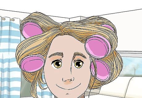 Use foam rollers or make pin-curls to create a vintage look. To do pin-curls, wash your hair and towel-dry to remove excess water. Then, pin your hair to your scalp in small, flat spirals and let it dry before removing the pins. To make curls with foam rollers, wrap small sections of damp hair around the rollers, then let your hair air-dry overnight.