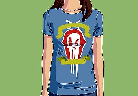 Bring a pop of color to your outfit with a graphic shirt. While you won’t find anything more classic to the skater look than a Thrasher top, any colorful T-shirt with a graphic on it will allow you to customize your look to make it your own. Choose a bright shirt that contrasts with the rest of the outfit and that has a large graphic to break the outfit up a little. A T-shirt in a single block color will normally be a little too minimalist for the skater style. Choose something with the logo of a brand or band that you like to make the look a little more interesting.