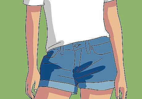 Contrast your shirt with your shorts or a skirt for a more summery outfit. If you went for a brightly-colored pair of shorts or a skirt, stick with a light-colored, pastel, or even white shirt to balance out your style. Alternately, if your shorts or skirt is a little more muted, add a bright pop of color with a vibrant t-shirt or blouse. Avoid matching the color of your shirt with the color of your shorts or skirt, as this will normally make your outfit blend together a little too much. If you opt for an outfit that’s all 1 color, pick a shirt, skirt, or pair of shorts that are patterned in some way to break it up a little.