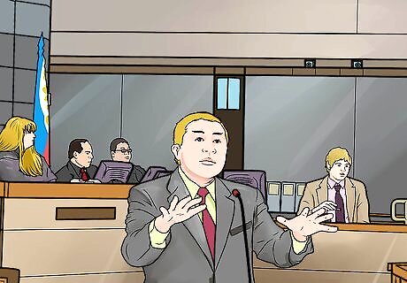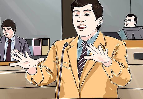 Make a closing argument. After all evidence has been presented, you can make a closing argument to the jury. The purpose of the closing argument is to tie together all of the evidence and tell the jury how the evidence supports your case. Remember to refer back to specific pieces of evidence. The jury might have forgotten the evidence they were shown early in the trial. Explain to the jury the significance of the evidence. For example, you could say, “I showed you the phone log which listed all of the phone calls the defendant made. Do you remember how many calls he made? Twenty-eight. And about half of those were after 9:00 pm. That many phone calls, that late at night, is clearly abusive and against the law.”