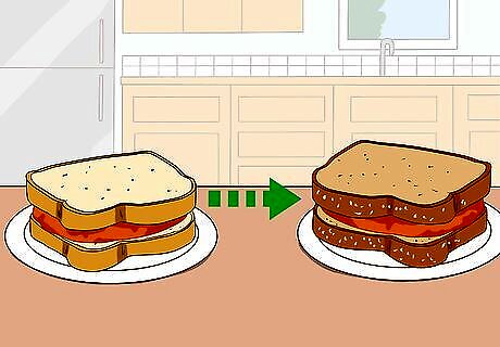 Substitute out low-nutrient groceries for nutrient-rich alternatives. If you have certain meals you always eat—chicken sandwiches, for instance, or breakfast cereal—make sure you are getting the most nutrients possible. Swap out low-nutrient foods, like white bread, for nutrient-rich foods, like whole wheat, seed, or nut bread. Add spinach to a lettuce salad. Try to swap whole grains for all your wheat products. Fermented milk products like plain yogurt and kefir are generally more nutritious than plain milk products. Drink juices and smoothies instead of soda when you want a sweet beverage. However, watch how much you drink! Although they have nutrients, juices and smoothies also contain sugars, so you need to limit how much you drink.