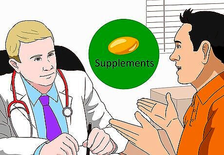 Talk to your doctor before adding any supplements to your diet. Doctors will be able to tell you if you are taking too much of a supplement, and what you should watch out for. They will also be able to tell you if your supplements interfere with any of the medication you are taking. For instance, taking antioxidant vitamins can interfere with chemotherapy. St. John's Wort can break down medicines like anti-depressants or birth control, making them less likely to work. Never swap a prescribed medication out for a supplement without first consulting your doctor. A supplement may claim to cure the condition you are taking medicine for, but it may only address certain causes. For instance, iodine will only help with a thyroid condition if the condition was caused by iodine deficiency. Your doctor can order a blood test to help determine what vitamins and nutrients you are deficient in so you know what you should be supplementing.