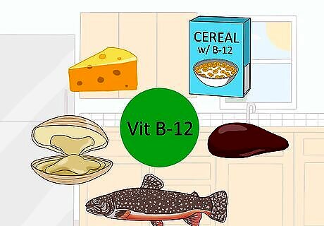 Get vitamin B12 from meats or fortified cereal. Beef liver is rich in vitamin B12. You can also find it in trout and clams. If you're a vegetarian, you can find vitamin B12-fortified breakfast cereals and other foods.