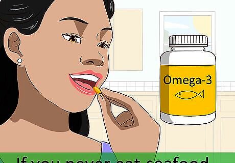 Ingest Omega-3 if you never eat seafood. It's hard to get omega-3 fatty acids if you don't eat 2-3 servings of seafood a week. Omega-3s are important for heart health. Therefore, if you don't eat seafood and you are concerned for your heart health, talk to your doctor about adding an omega-3 supplement. Ask about a supplement of around 200–300 mg a day.
