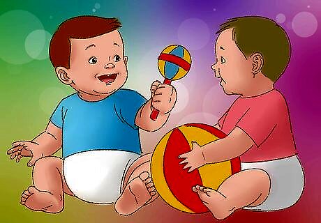Arrange “play dates” at a young age. Another way to support social development in an infant is to arrange play dates even before they are able to crawl or sit up. This is as simple as putting two non-sibling babies near each other for “tummy time” on a blanket on the floor. Although very young children do not seem to interact or play with each other, they are aware that the other child is nearby and are actually in the beginning stages of developing empathy, a very important social skill.