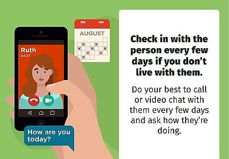 Check in with the person every few days if you don’t live with them. Monitoring the person’s condition is harder if you don’t live with them and are practicing social distancing. Do your best to call or video chat with them every few days and ask how they’re doing. While text messaging is okay, it’s hard to get a feel for how a person is doing through texts. It’s better to hear their voice. They’ll also feel more connected by talking to you directly, so it’s better all around. If possible, try to FaceTime or use a video conference program occasionally. It’s easier to tell how a person is doing if you can see them.