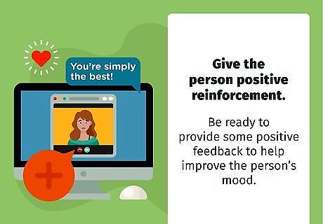 Give the person positive reinforcement. People with depression are often very critical of themselves and judge themselves harshly. Be ready to provide some positive feedback to help improve the person’s mood. Remind them of what they’re good at and the positive qualities they have. This can provide a much-needed boost. People with depression commonly say things like “I’m not good at anything.” You could say “That’s not true. You’re the best guitar player I know!” Unfortunately, some people with depression resist compliments. In this case, don’t argue with them. Simply give them positive reinforcement and move on.
