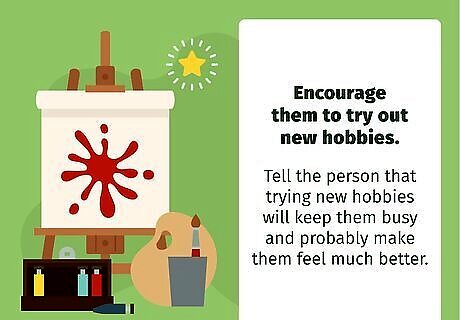 Encourage them to try out new hobbies. Taking up new hobbies can reframe the isolation and turn it into an opportunity. There are all kinds of things they can do from home, like playing an instrument, writing, painting, woodworking, crocheting, and countless others. Even better, they can learn how to do these things online. Tell the person that trying new hobbies will keep them busy and probably make them feel much better. They could also rediscover old hobbies that they haven’t done in a while. If they used to draw, for example, encourage them to take up the hobby again. You could take this as an opportunity too. Consider starting a new hobby with them to keep them motivated. Of course, it’s difficult to concentrate on new hobbies if you’re feeling stressed or depressed. Don’t shame the person for not learning a new hobby, since this will make them feel much worse.